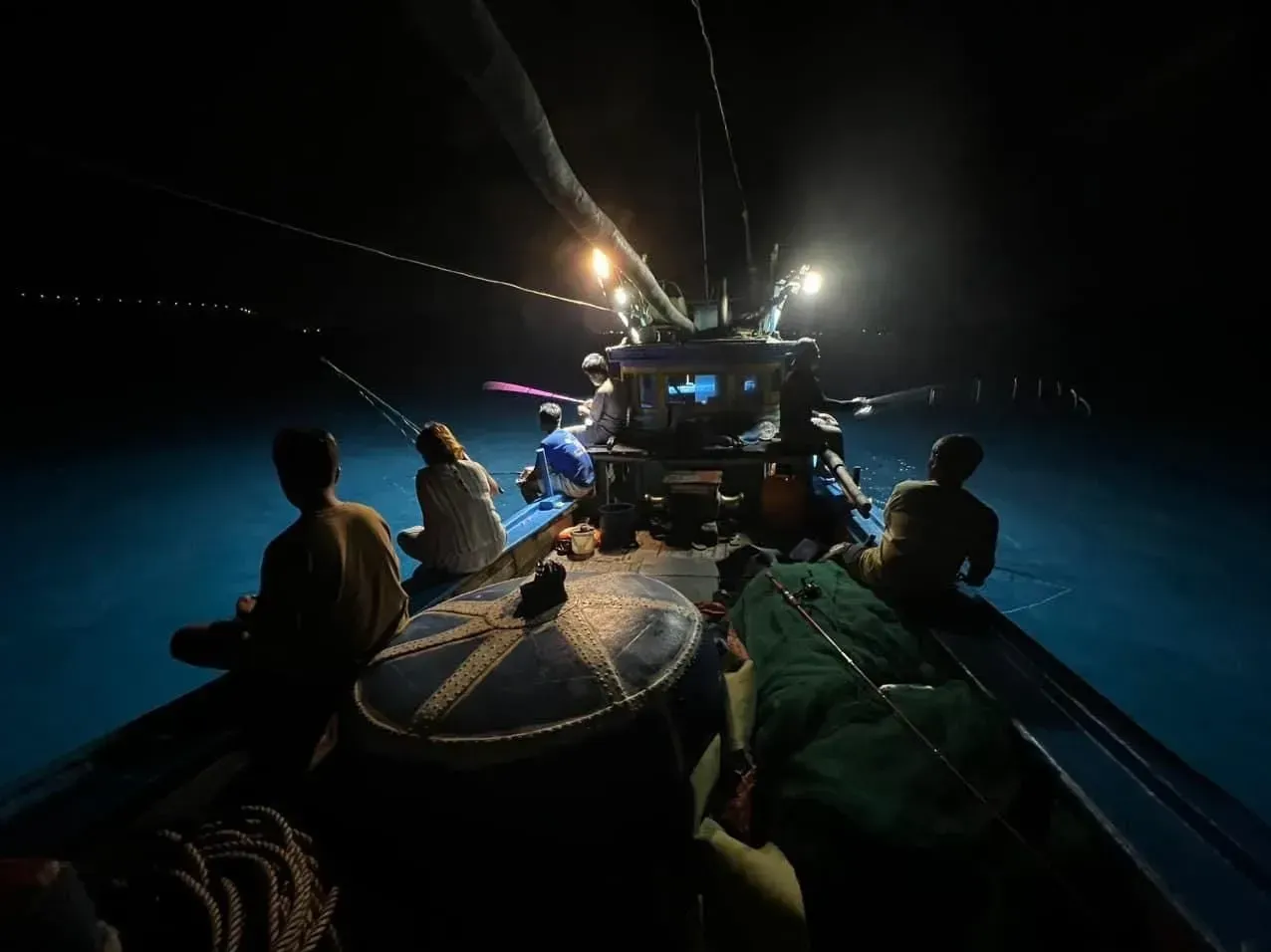 Trong chuyến du lịch Bình Ba, sau khi đã khám phá đảo ban ngày, bạn không nên bỏ lỡ hoạt động Câu mực đêm đầy thú vị. Đây là một trải nghiệm độc đáo, giúp bạn có cơ hội thử sức làm ngư dân thực thụ giữa lòng Vịnh Cam Ranh khi màn đêm buông xuống. Khác với sự ồn ào ban ngày, không gian đêm trên biển vô cùng yên tĩnh và mát mẻ, chỉ có ánh đèn từ thuyền câu và bầu trời đầy sao.