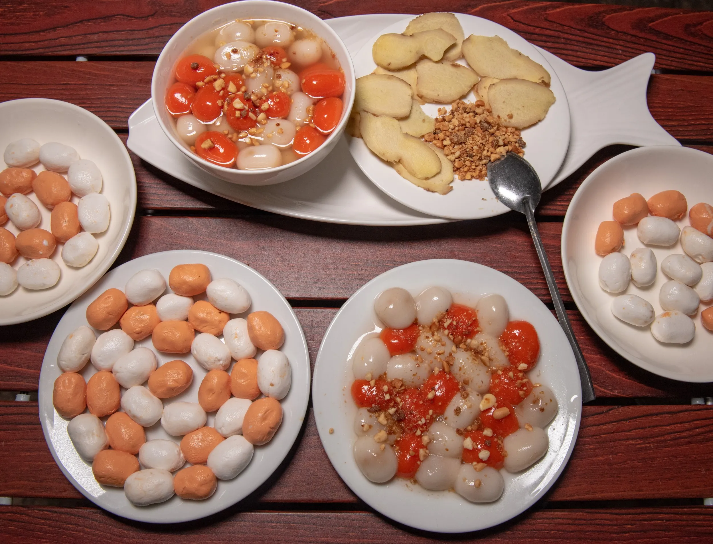 Đây là món bánh truyền thống thường xuất hiện vào ngày lạnh. Bánh được làm từ gạo nếp giã mịn, vo tròn rồi thả vào nước gừng nóng. Khi ăn, bạn sẽ cảm nhận được vị ấm nồng của gừng, vị dẻo mềm của bột và chút ngọt thanh rất dễ chịu. Một món ăn đơn giản nhưng mang hương vị rất “Cao Bằng”, vừa ăn vừa thấy ấm từ trong người.