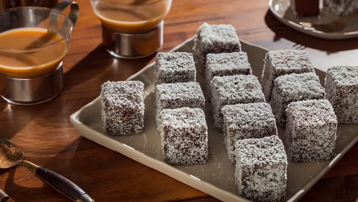 Lamington được mệnh danh là “Chiếc bánh quốc gia” của Úc với vẻ ngoài vô cùng bắt mắt và hương vị tinh tế. Đây thực chất là những khối bánh xốp hình vuông, được phủ một lớp socola óng ánh bên ngoài và lăn qua vụn dừa trắng muốt như tuyết. Sự kết hợp giữa cốt bánh mềm mịn, vị đắng nhẹ của socola và mùi thơm ngậy của dừa tạo nên một sức hút khó cưỡng.
