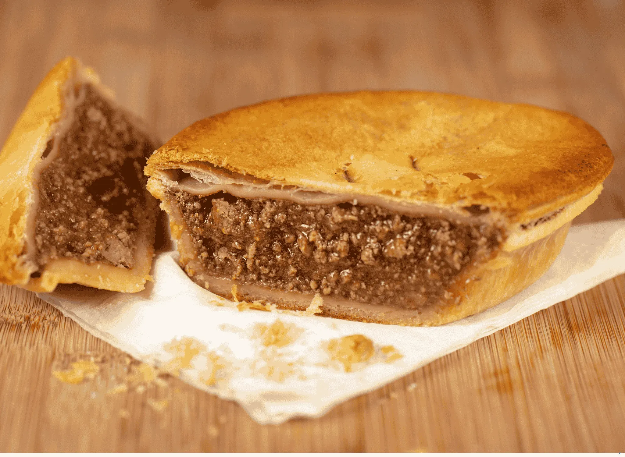 Nếu Việt Nam có bánh mì thì nước Úc có meat pie (bánh nhân thịt). Đây là món ăn nhẹ phổ biến đến mức bạn có thể tìm thấy chúng ở mọi tiệm bánh, cây xăng hay các sự kiện thể thao lớn. Chiếc bánh có lớp vỏ ngoài bằng bột ngàn lớp giòn rụm, bao bọc bên trong là phần nhân thịt bò băm nhuyễn hòa quyện cùng nước sốt gravy béo ngậy, đôi khi có thêm nấm, hành tây hoặc phô mai.